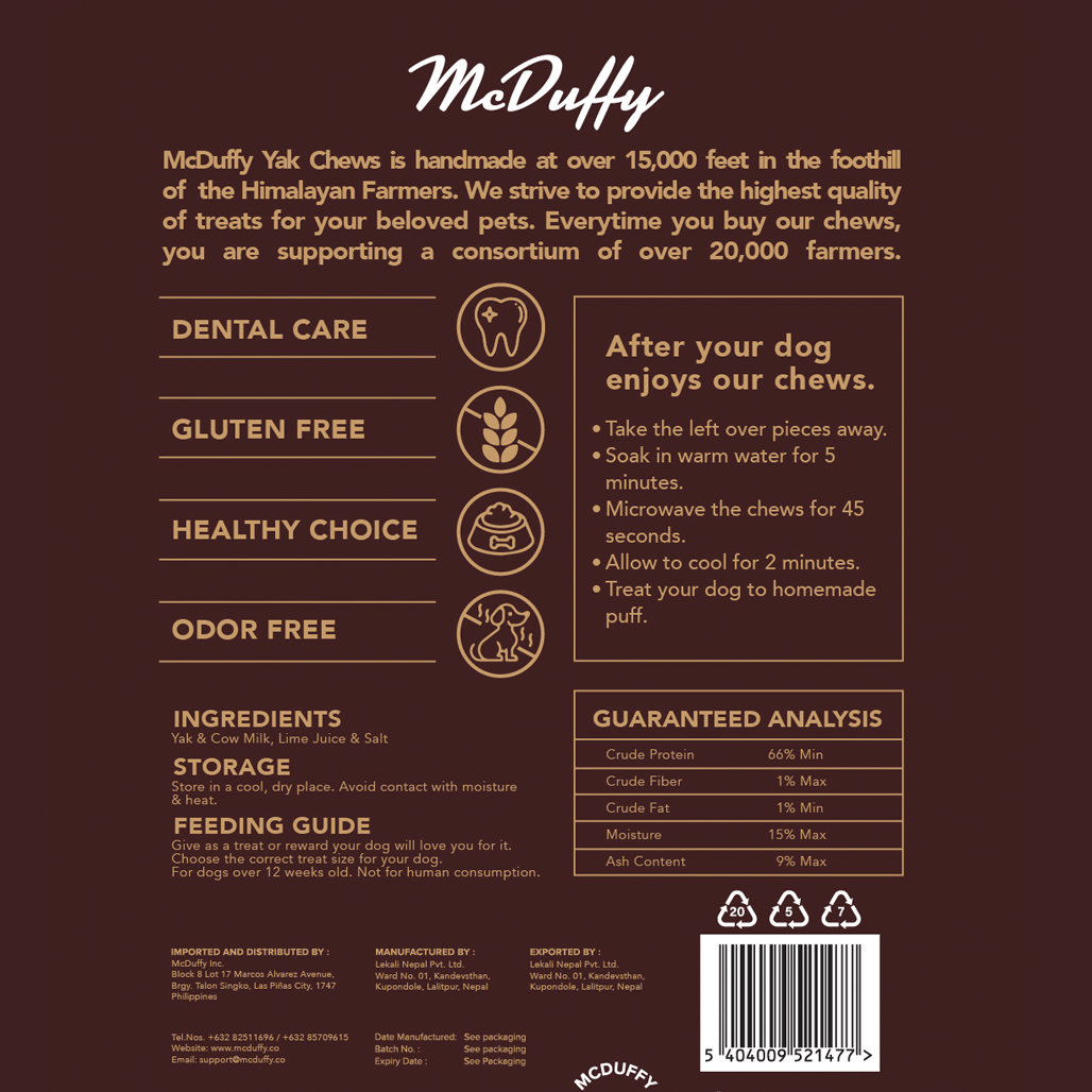 Our Himalayan Yak Chews are made from 100% natural yak milk sourced directly from Himalayan yaks, known for their robust health and rich milk. The milk is carefully processed and transformed into a delectable chew that is not only irresistible but also highly nutritious.
